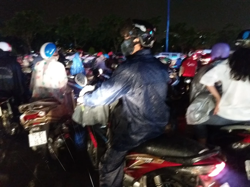Nhiều anh chị em công sở đi đón con phải vật lộn giữa biển nước trên đường về nhà. Ai cũng choáng váng vì cơn mưa lớn ngoài sức tưởng tượng. Anh Hùng (làm việc tại TP, nhà ở Bình Dương) chia sẻ: "Chưa khi nào mình mắc mưa, kẹt đường như chiều nay. Thấy trời tối thui mình tranh thủ về lúc 4 giờ 15, mà về được đến nhà đã gần 7 giờ tối. Vừa đói, vừa lạnh, đuối".
