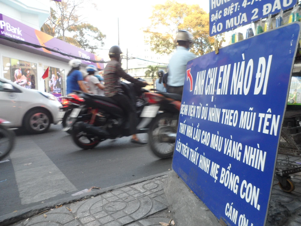 Tấm biển chỉ đường đến bệnh viện Từ Dũ được cóp nhặt từ những đồng tiền lẻ của người đàn ông không biết chữ. Ảnh: NGUYỄN TRÀ