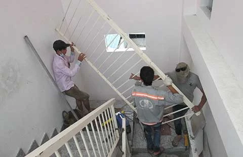 Tại nhà anh Đinh Xuân Giao, các công nhân đang gấp rút sửa sang để kịp công việc, ngày 25-6 này đón các thí sinh vào ở. Ảnh: LÊ TUYẾT