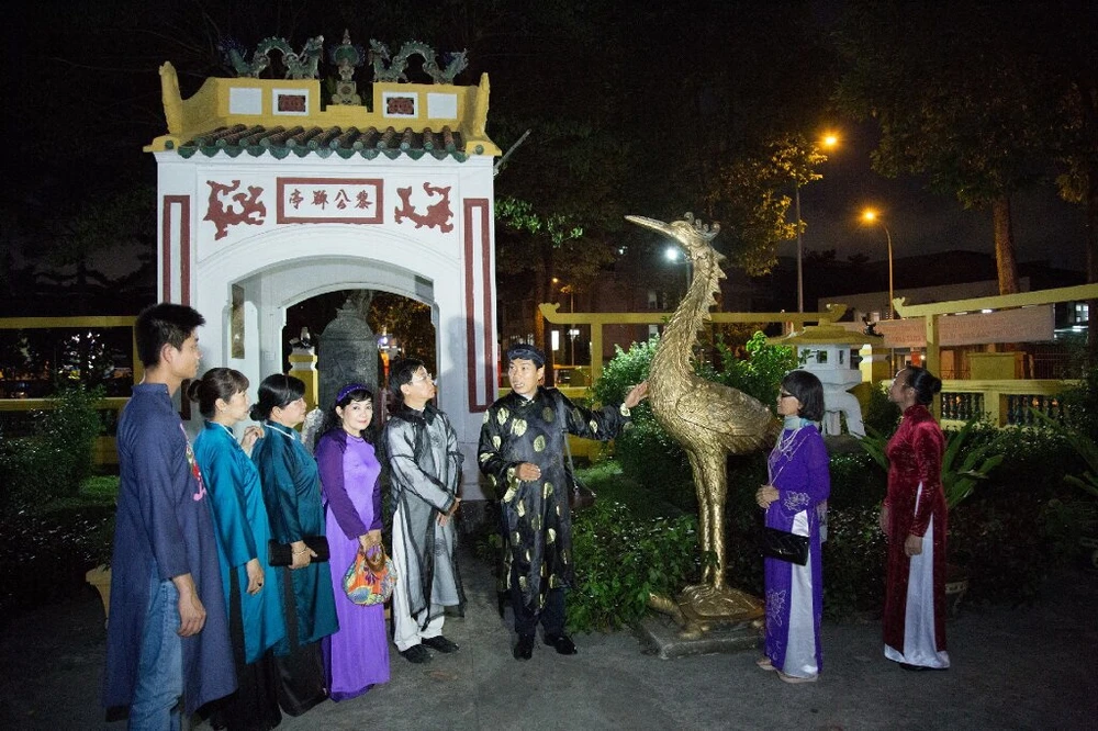 Các thành viên của CLB thăm viếng và chụp ảnh tại Lăng Tổng trấn thành Gia Định Lê Văn Duyệt (Lăng Ông Bà Chiểu). Ảnh: VĨNH NGUYÊN