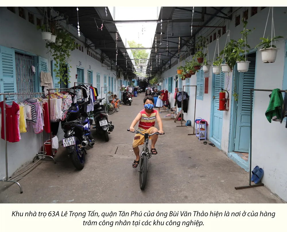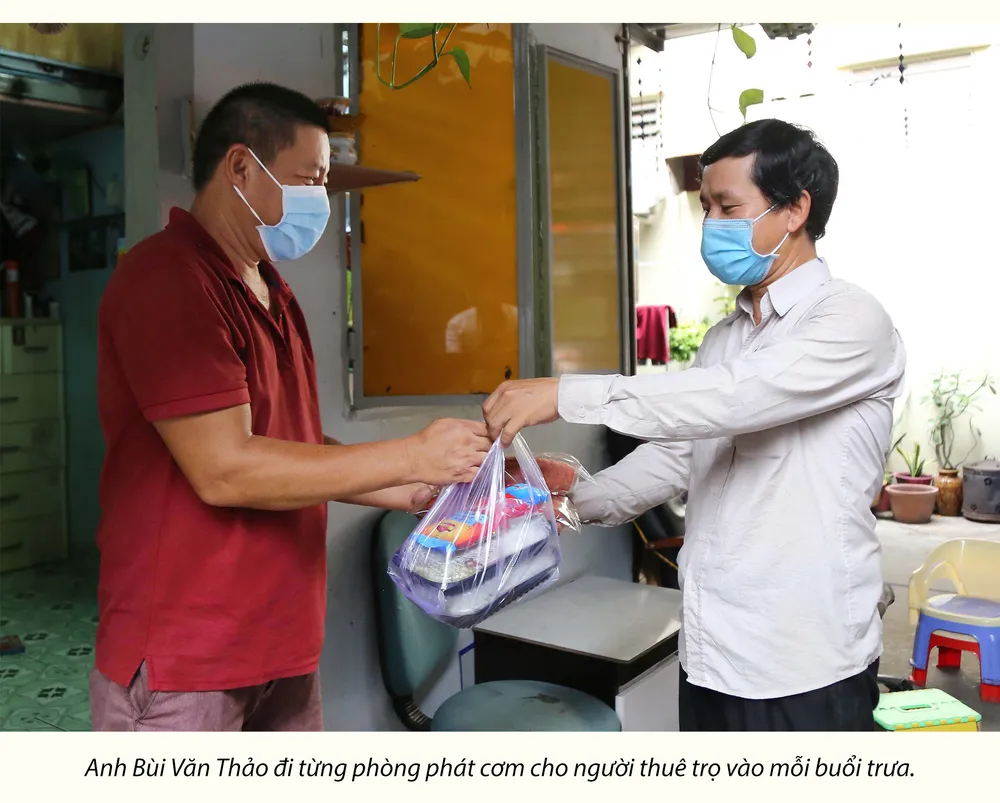 Cùng đồng cảm với người đi thuê trọ như anh Thuấn, ông Bùi Văn Thảo (chủ nhà trọ trên đường Lê Trọng Tấn, quận Tân Phú) cũng đã giảm tiền thuê phòng. Không những vậy, từ ngày 7-4, đều đặn mỗi ngày 11 giờ trưa, ông Thảo lại chạy qua quận Phú Nhuận nhận những suất cơm miễn phí về phát cho các thành viên trong khu trọ. Số phần ăn này được ông Thảo vận động và được hỗ trợ thông qua sự phối hợp của Liên đoàn Lao động TP.HCM cùng Hội Doanh nghiệp hàng Việt Nam chất lượng cao.