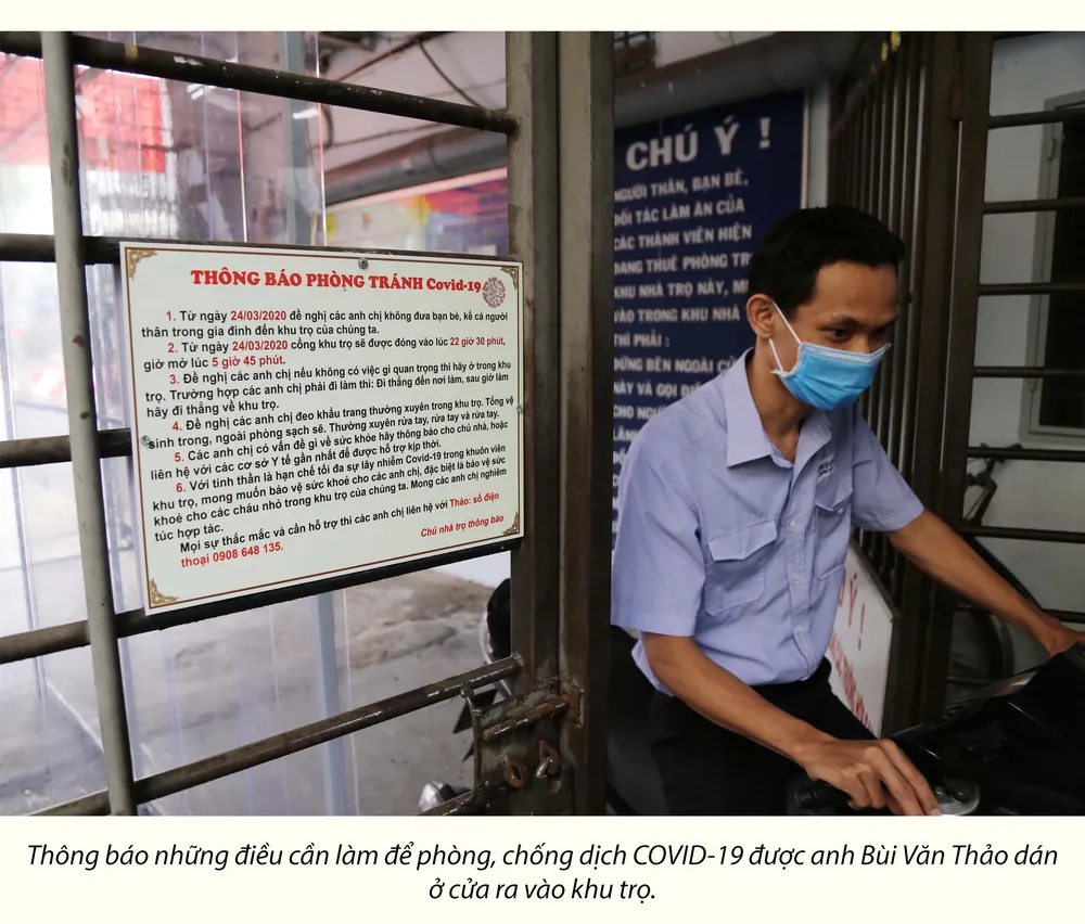 Chia sẻ thêm về các biện pháp phòng, chống dịch ở khu trọ, ông Thảo cho biết đã triển khai tuyên truyền đến mọi người, trang bị thêm phòng sát khuẩn, vận động mọi người tổng vệ sinh và phát khẩu trang miễn phí cho mỗi người.