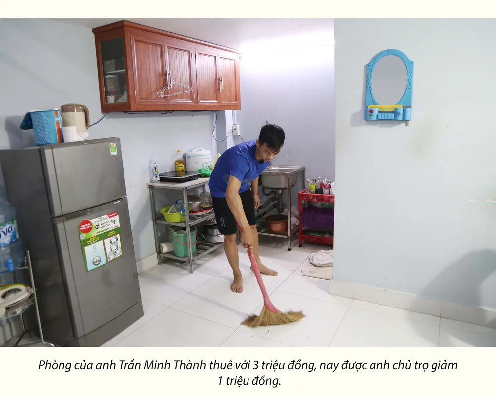 Chị Thanh chia sẻ trong thời điểm công việc gặp khó khăn, sự chia sẻ của chủ trọ khiến chị rất vui và hạnh phúc. Anh Trần Minh Thành, sống cùng khu trọ với chị Thanh, tiếp lời: “Bình thường phòng em thuê 3 triệu, nay được anh chủ trọ giảm 1 triệu. Như thế, em có thể tiết kiệm được một khoản tiền để dùng cho những công việc khác”.