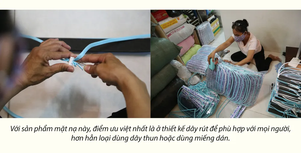 Chị Quách Mỹ Linh (42 tuổi, quận Bình Thạnh), người đưa ra sáng kiến làm những chiếc mặt nạ, cho biết chị tham khảo mẫu mặt nạ chống dịch trên các trang mạng nước ngoài, sẵn kinh nghiệm kinh doanh nón của bản thân, chị đã mày mò tìm mua các nguyên liệu để tự sáng chế, tạo ra một sản phẩm hoàn chỉnh nhất.