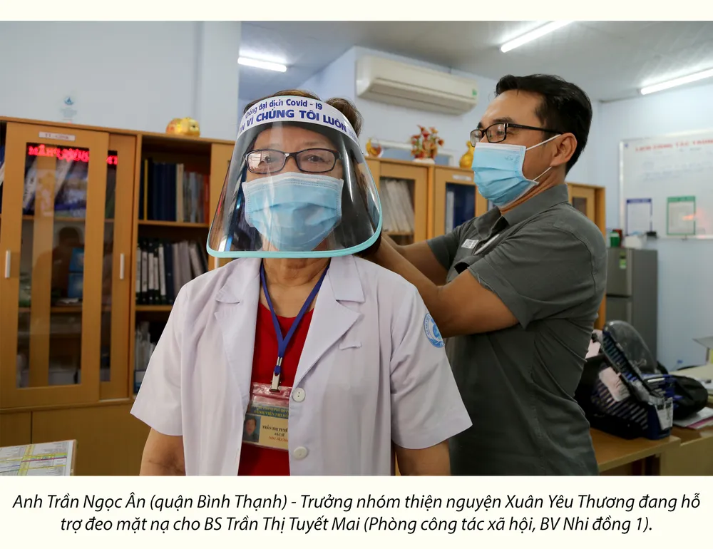 Đến thời điểm hiện tại, nhóm thiện nguyện Xuân Yêu Thương đã trao tặng tổng cộng 1.300 mặt nạ chống giọt bắn cho chín bệnh viện trên địa bàn TP, trong đó có các bệnh viện đang ở tuyến đầu chống dịch như BV dã chiến Cần Giờ, Củ Chi, BV Nguyễn Tri Phương…