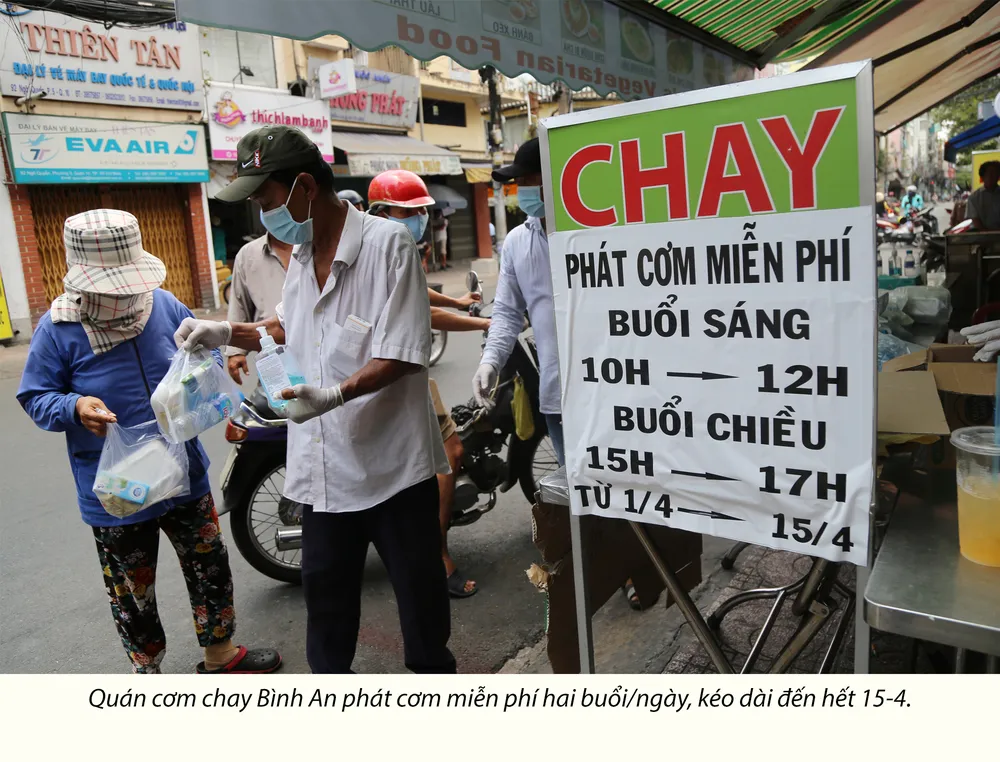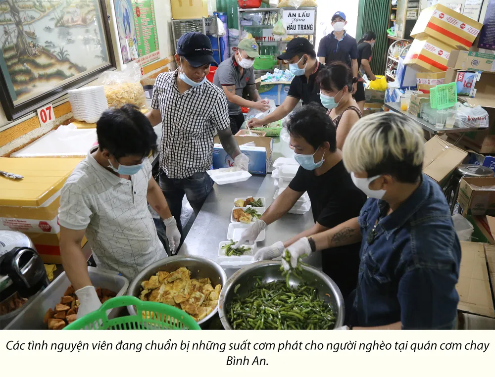 Cách đó không xa, quán cơm chay Bình An cũng đang trở thành một địa chỉ quen thuộc với những người nghèo, khó khăn ở Sài Gòn.