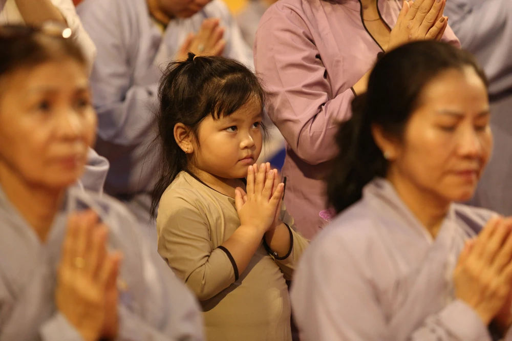 Các phật tử đọc chú cầu an tại chùa Viên Giác.