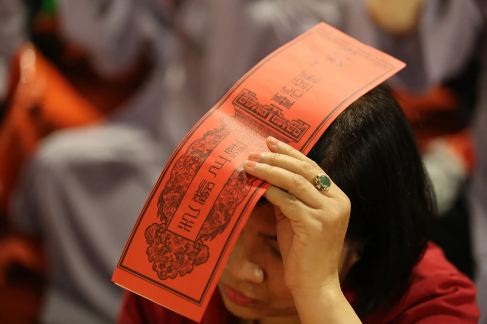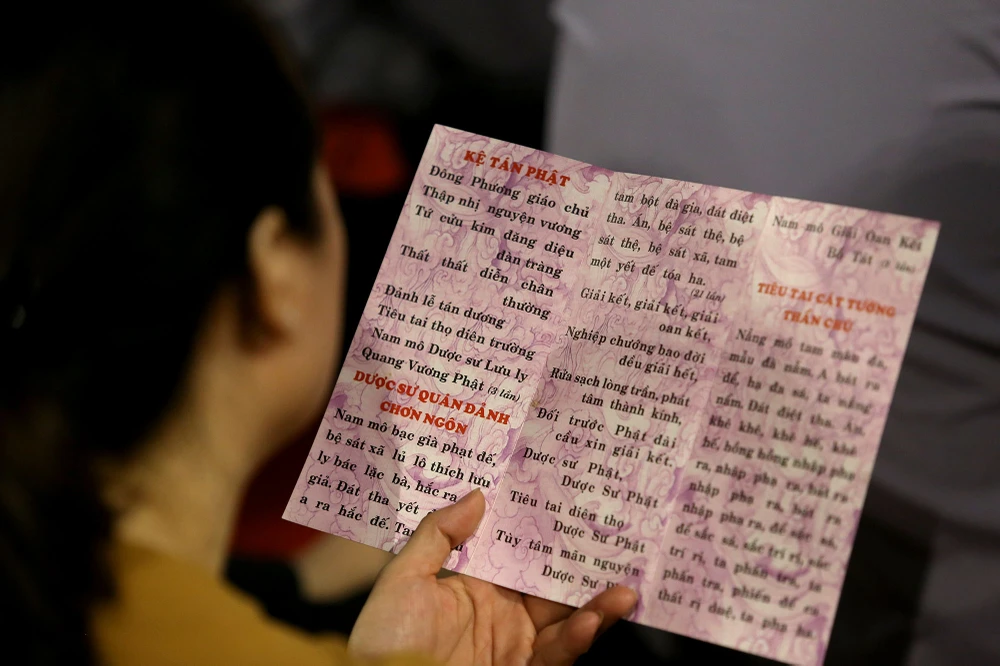 Người người đội sớ nghe sư thầy đọc kinh, đọc tên cầu an, hóa giải những điều trắc trở trong năm mới.