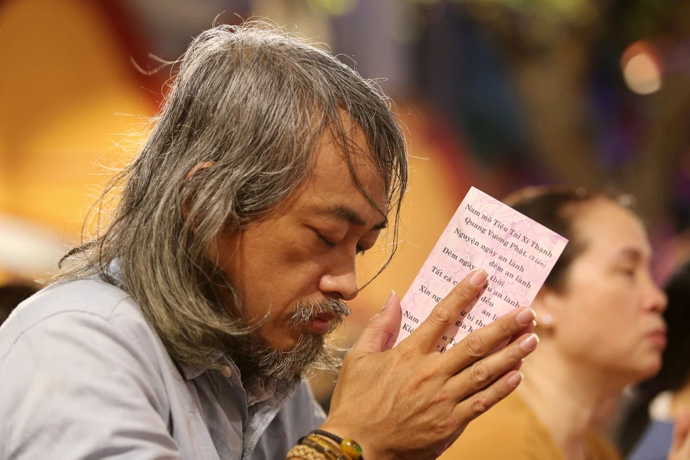 Cụ ông thành tâm khấn chú đại bi cầu an trong năm mới.