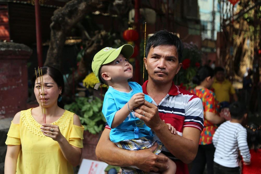 Nhiều gia đình đưa con nhỏ đến chùa cầu an.