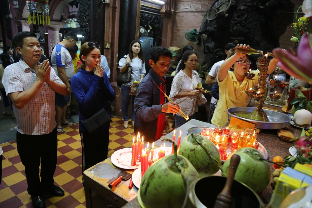 Tại chùa Ngọc Hoàng (quận 1) từ sáng sớm đã có rất đông người dân đến làm lễ cúng chuyển vận và đăng ký cúng sao giải hạn.