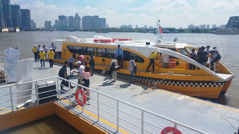 Bắt đầu từ ngày 25-11, tuyến buýt sông đầu tiên được chính thức hoạt động sau nhiều lần trì hoãn. Ảnh: THI NGUYỄN.