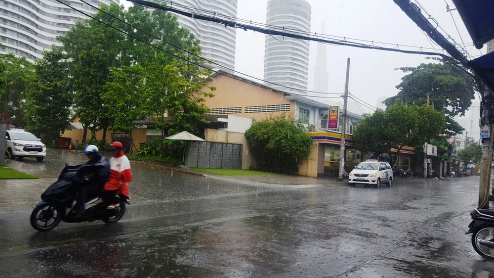 Nước mưa bắt đầu đổ xuống đường Nguyễn Hữu Cảnh, quận 1.