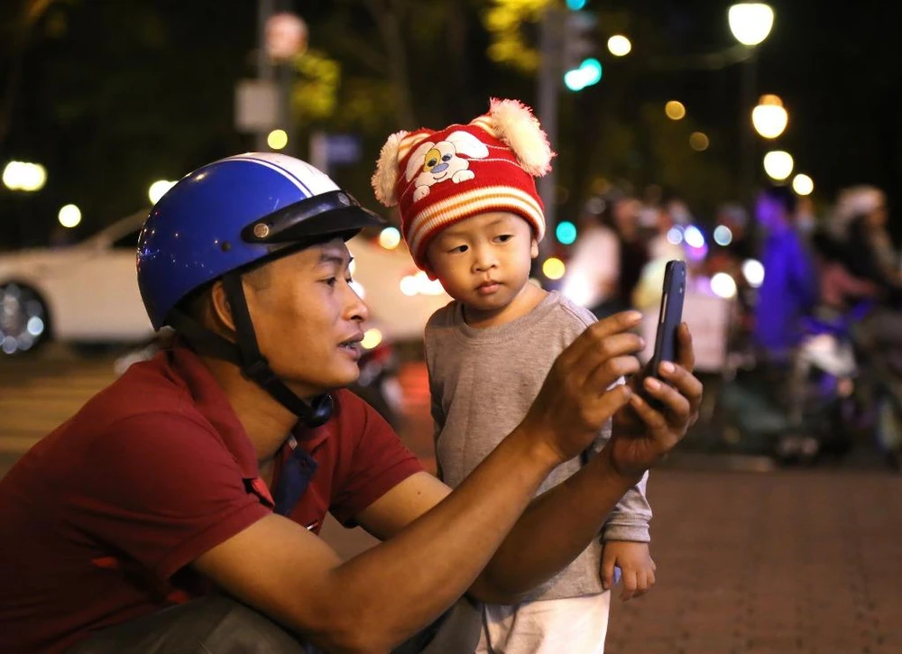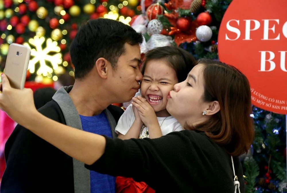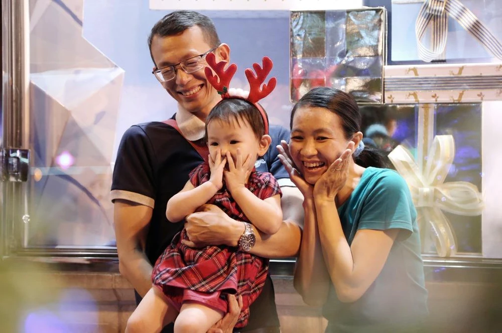 Hình ảnh ấm áp của một gia đình trong đêm Noel sớm.