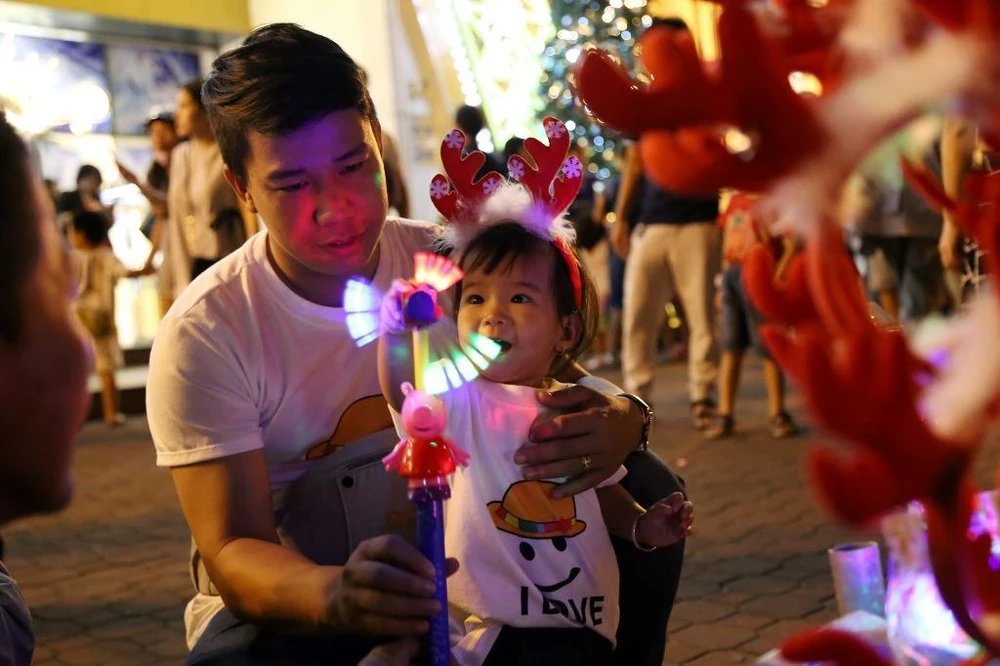 Trước trung tâm thương mại trên đường Lê Duẩn (quận 1), vào buổi tối cuối tuần nhiều gia đình đã đưa con xuống phố chơi Noel sớm.