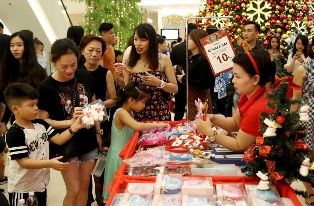 Các gian hàng bày bán đồ chơi Noel luôn đông khách trong những ngày cận lễ.