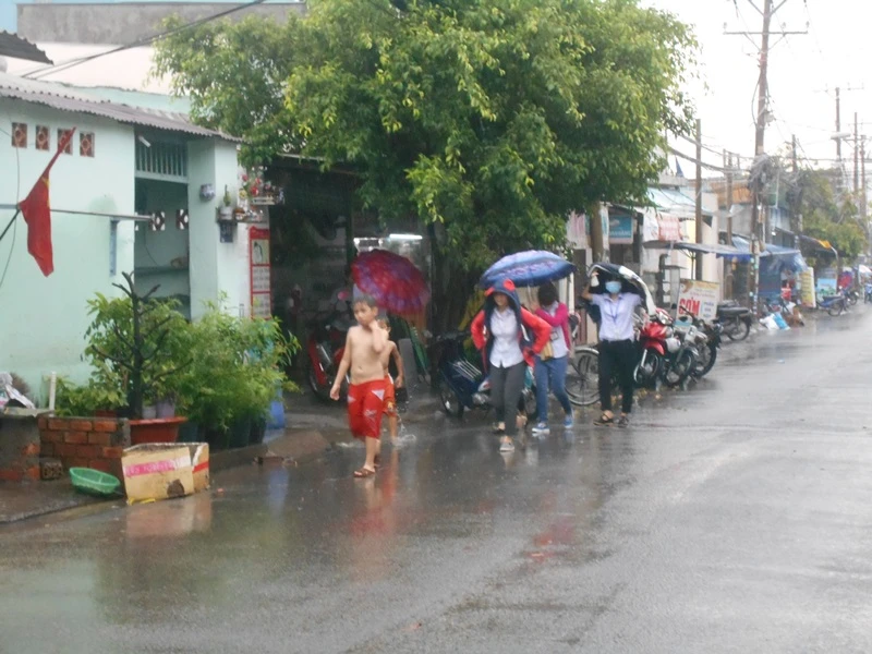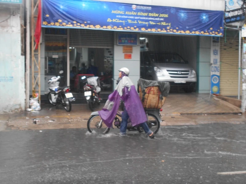 Theo ghi nhận, cơn mưa lớn bắt đầu khoảng 15 giờ 30 đến 17 giờ thì tạnh. Cơn mưa có diện rộng, trải dài hầu khắp các quận, huyện của TP. Cơn mưa kèm theo gió mạnh, nhiều nơi có giông nhẹ, nhiều tuyến đường ngập trong làn nước, xe lưu thông phải bật đèn để di chuyển được an toàn.