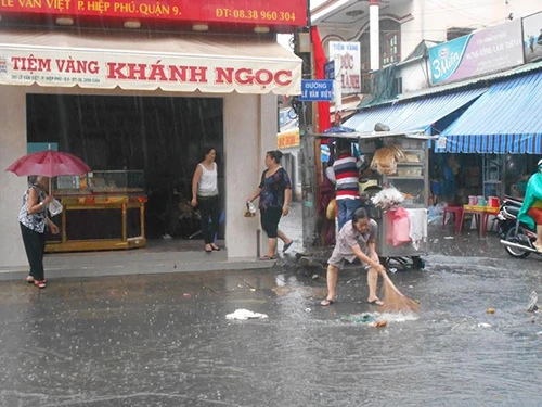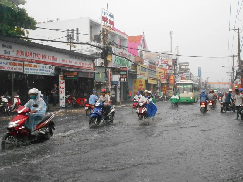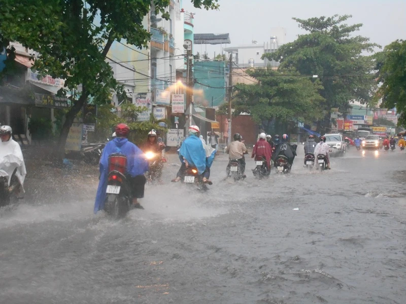 Tại một số điểm trên đường Phạm Văn Đồng, Nguyễn Xí (quận Bình Thạnh và Gò Vấp) đã xuất hiện ngập cục bộ, tuy nhiên nước đã rút khá nhanh.