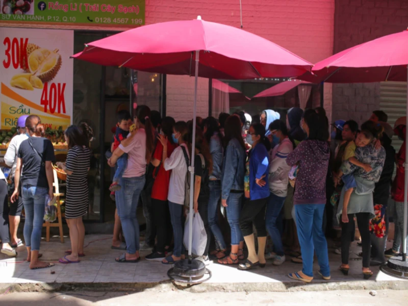 Nhiều người sẵn sàng xếp hàng hàng giờ để mua được sầu riêng giá mềm. Ảnh: Người Lao động