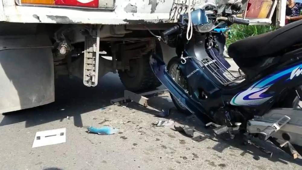 Khi còn cách khu vực ngã ba Giồng khoảng 100 m, người này va chạm mạnh với đuôi ô tô tải 51C-283.36 lưu thông cùng chiều.