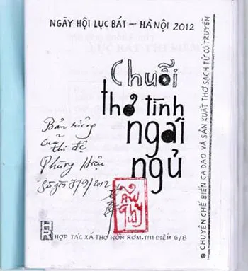 + Ôi dào, đáng bao nhiêu. Tập thơ dày nhất có hơn chục tờ giấy phôtô cỡ nửa A4, giá phôtô sáu đến bảy ngàn đồng, mình đem tặng bạn bè. Cứ năm người được tặng, có một người tặng lại cho mình năm chục ngàn là hòa rồi. “Tặng bao nhiêu tập không vét túi. Gặp mỗi tri âm đã đủ tiền”.