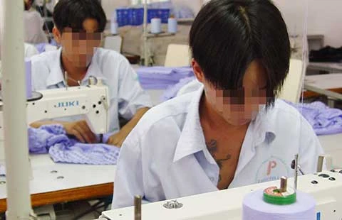 Các học viên cai nghiện đang học nghề may tại Trung tâm Giáo dục Nhị Xuân (TP.HCM). Ảnh: HTD