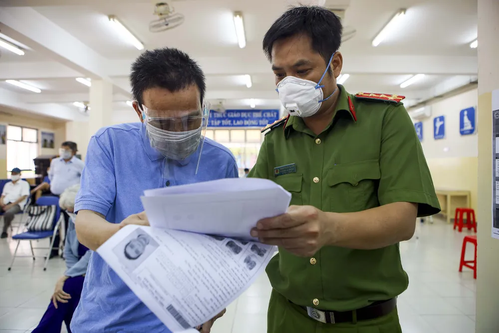 Trung úy Lê Vũ Linh (Tổ trưởng tổ cấp CCCD lưu động tại phường 5) những người được tiếp nhận phải đảm bảo đã tiêm đủ ít nhất 1 mũi vaccine.