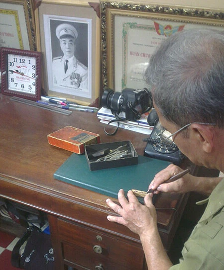 Ông Dũng bên hộp đồ nghề năm xưa mà ông xem như báu vật. Ảnh: TUYẾT KHUÊ