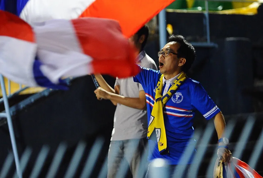Chỉ một nhóm chừng năm cổ động viên Thái Lan nhưng họ "quẩy" làm cho sân Cần Thơ rất vui nhộn