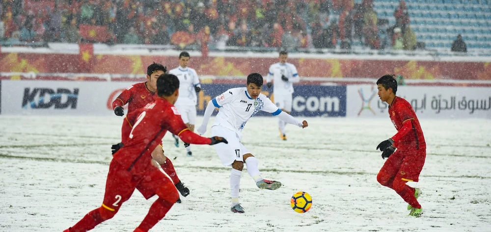 Thi đấu trong điều kiện tuyết rơi dày đặc mặt sân nhưng U-23 Việt Nam đã thể hiện tinh thần ngoan cường.