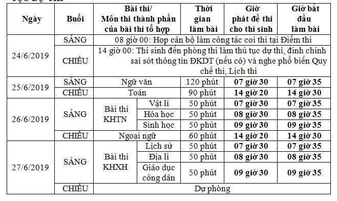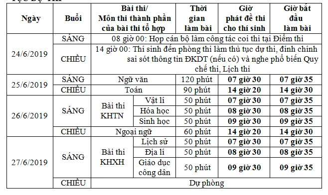 Lịch thi THPT quốc gia năm học 2018-2019.