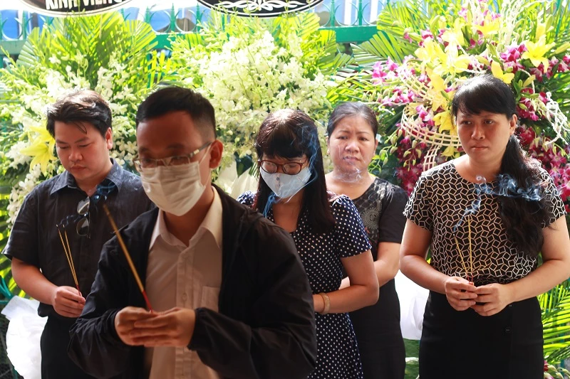 Các giảng viên, sinh viên khoa Báo chí và Truyền thông đến tạm biệt thầy Vũ Đức Sao Biển. Ảnh: NHẬT TIẾN