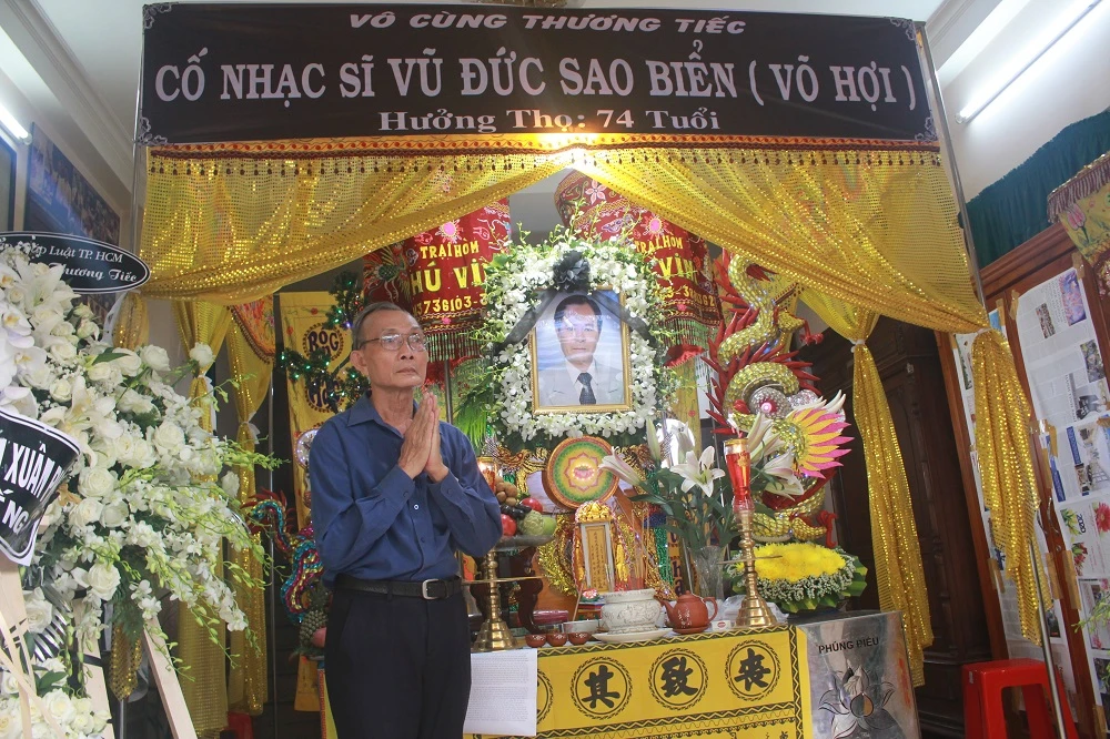 Bạn học thương tiếc trước sự ra đi của nhạc sĩ Vũ Đức Sao Biển. Ảnh: NHẬT TIẾN