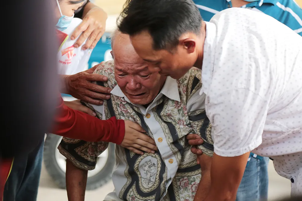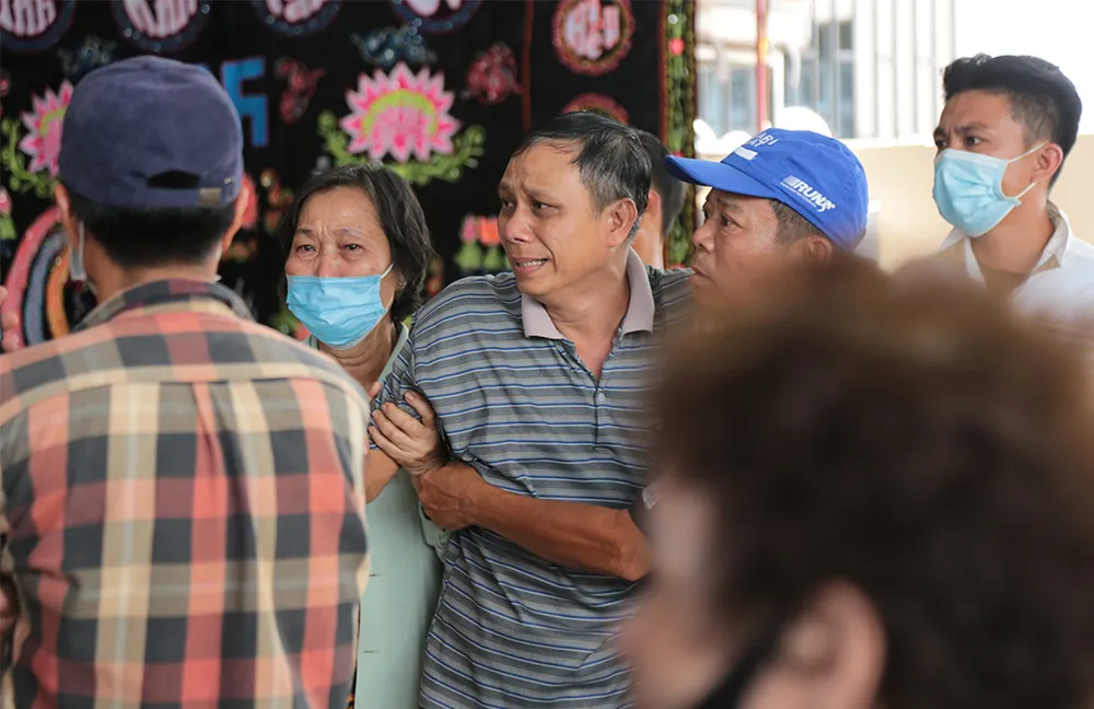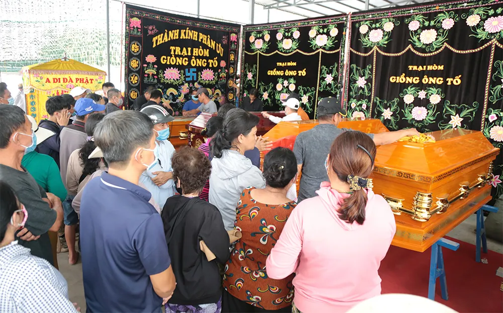 Người thân của gia đình gặp nạn đều đi không vững, họ phải có những cánh tay của bà con, xóm giềng dìu đi. Đặc biệt là người mẹ, người cha của hai bên nhà nội ngoại khóc nghẹn nhìn theo từng chiếc quan tài từ từ rời xe, đưa vào bên trong. Đây là lần cuối cùng họ có thể nhìn mặt người thân.