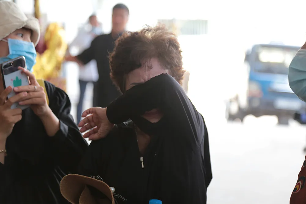 Thân nhân của sáu người tử vong trong vụ cháy không cầm được nước mắt khi những cỗ quan tài lần lượt được đưa về cơ sở tang lễ. Ảnh: NT
