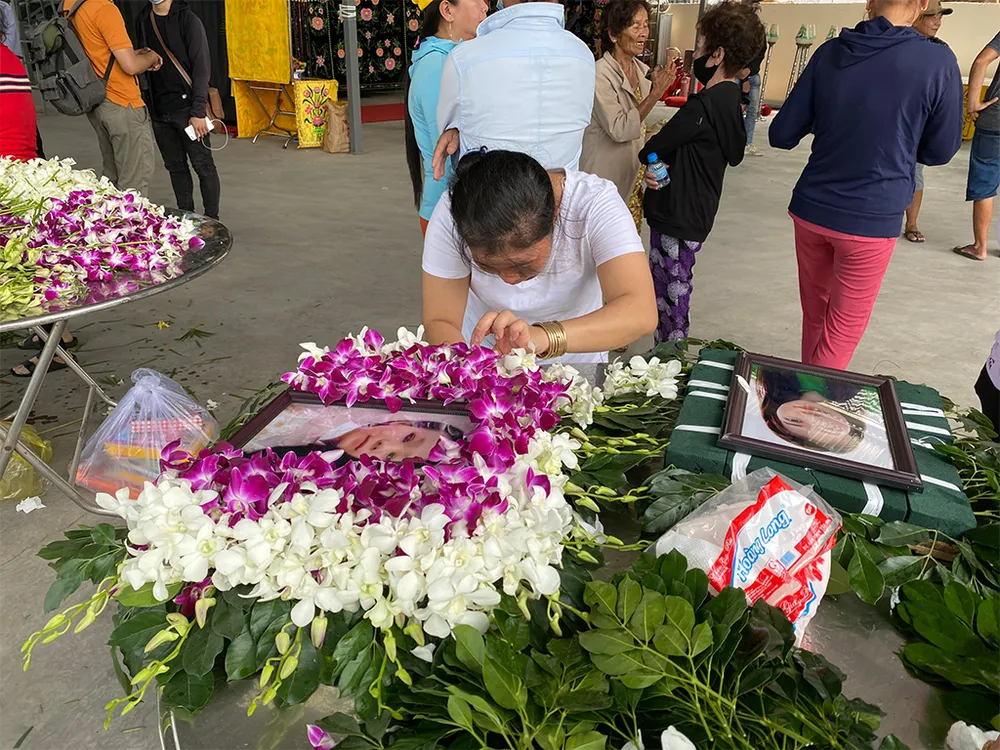 Tiết trời nắng nóng của miền Nam vào ban trưa càng khiến khung cảnh ở nhà tang lễ càng thêm ngột ngạt u sầu.