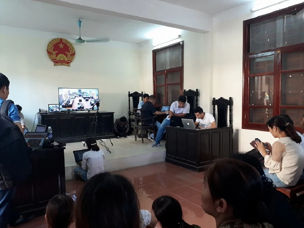 Báo chí và người dân tới theo dõi được bố trí ở 1 phòng riêng, qua màn hình tivi