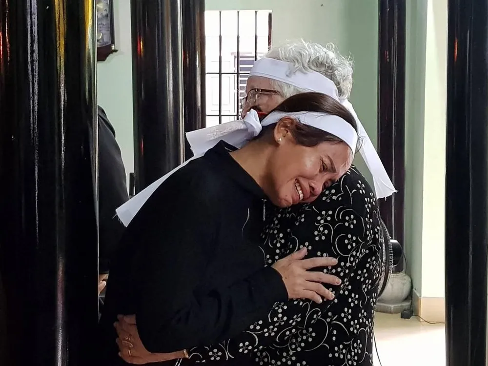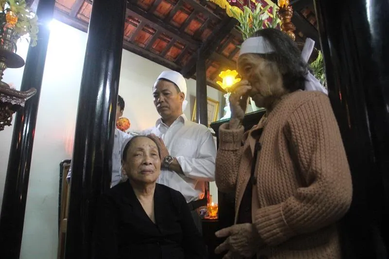 Em gái Đại tướng Lê Đức Anh (người ngồi) bật khóc trước sự ra đi của anh trai.