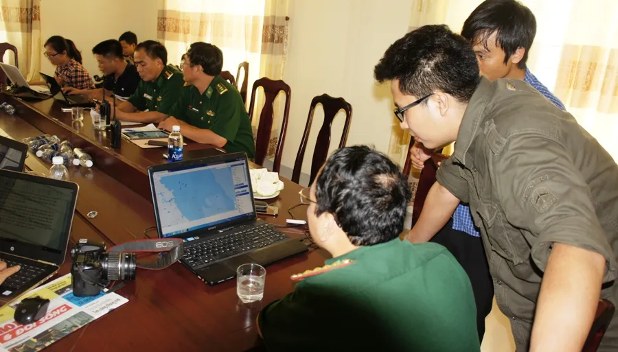 Lực lượng bộ đội biên phòng và cơ quan chức năng đang theo dõi các tàu tìm kiếm tại sở chỉ huy phía trước tìm kiếm cứu nạn đặt tại cảng Cửa Lò.