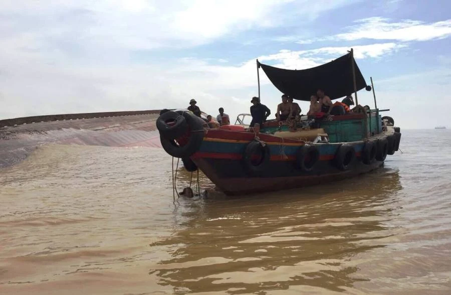 Các thợ lặn tiếp tục lặn vào các buồng trong tàu VTB26 đang lật úp trên biển Cửa Lò.