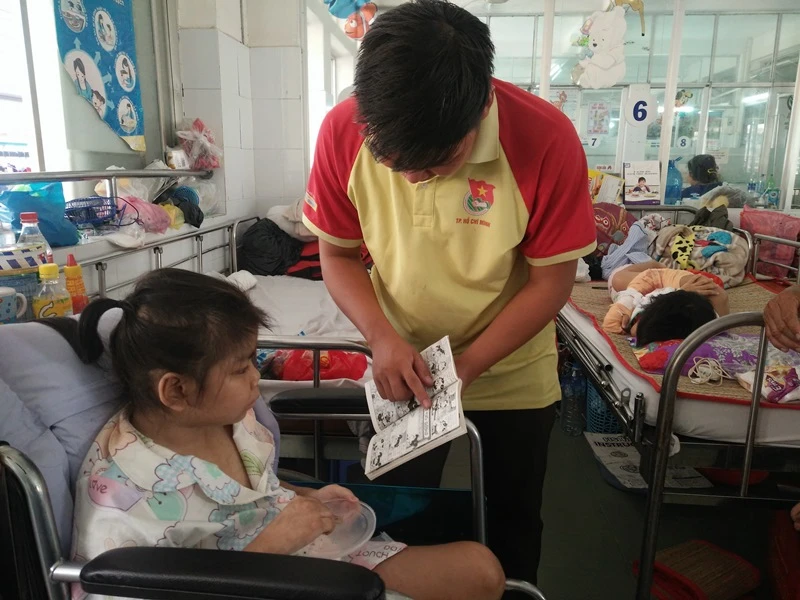Trưa vắng, dãy hành lang của khoa Chấn thương Chỉnh hình càng trở nên tĩnh lặng hơn cả. Còn thầy Phan Cẩm Sang vẫn ngồi kế bên giường bệnh đọc truyện cho cô học trò Đào Thị Giáng My (10 tuổi).