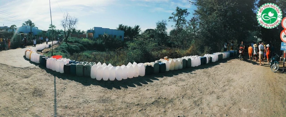 Những đợt nước đầu tiên được các mạnh thường quân hỗ trợ. Ảnh: NVCC