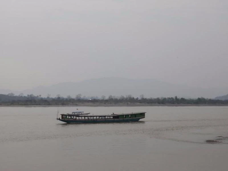 Một chiếc tàu di chuyển gần cảng Chiang Saen nằm bên bờ lãnh thổ Thái Lan gần Tam giác vàng ở khu vực sông Mekong vào ngày 3-3-2016. Ảnh: REUTERS