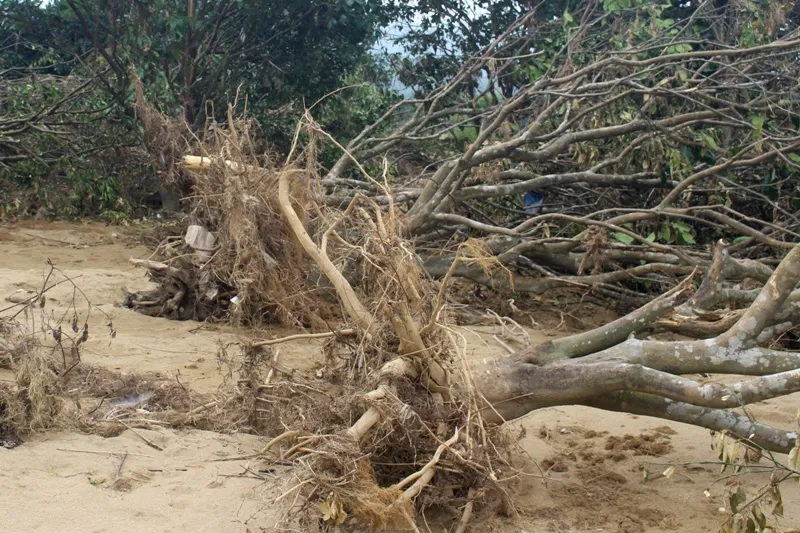 Một người dân kể lại: “Bắt đầu từ khoảng 4 rưỡi nước bắt đầu đổ về và dâng lên cao, chưa đầy hai tiếng sau, đến 7 giờ thì ở đây đã ngập, nhiều cây bị gãy đổ”.