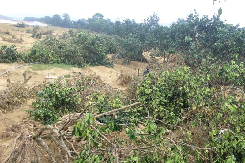 Vườn bưởi tan hoang sau lũ