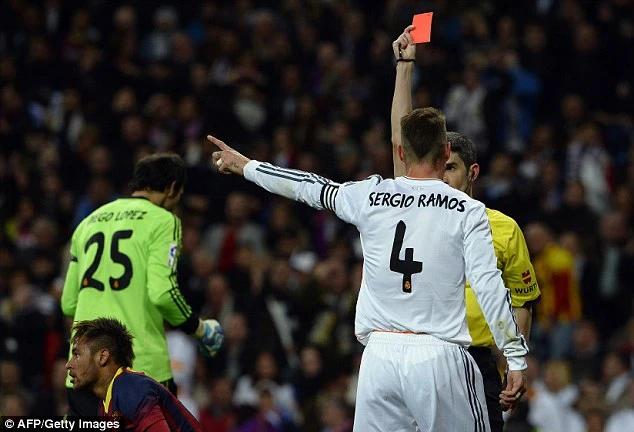 Trọng tài không ngần ngại rút thẻ đỏ với Ramos
