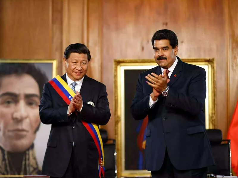 Chủ tịch TQ Tập Cận Bình (trái) và Tổng thống Venezuela Nicolas Maduro (phải).