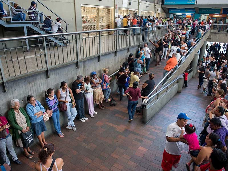 Dòng người xếp hàng dài đợi mua thực phẩm tại một siêu thị ở thủ đô Caracas, Venezuela. Ảnh: GETTY IMAGES