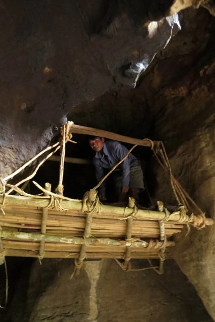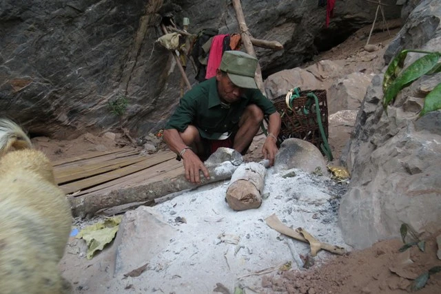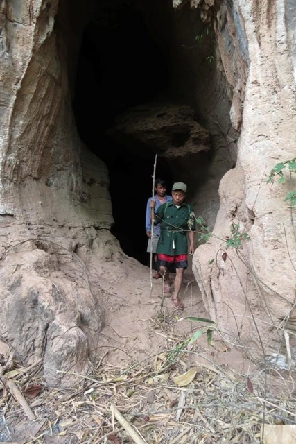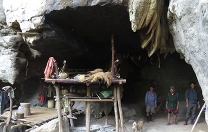 Đinh Rầu, người già nhất đoàn xuống trước. Ông chỉ tay lên hang Khe Chim thấp rồi nói: “Ông bà Đinh Nê ở trong đó”. Chúng tôi háo hức vượt suối, vượt cợp đá tai mèo theo lối mòn đi lên. Hang có hai cửa. Sự háo hức như bị dập tắt khi có thông báo, ông bà không có ở đây.