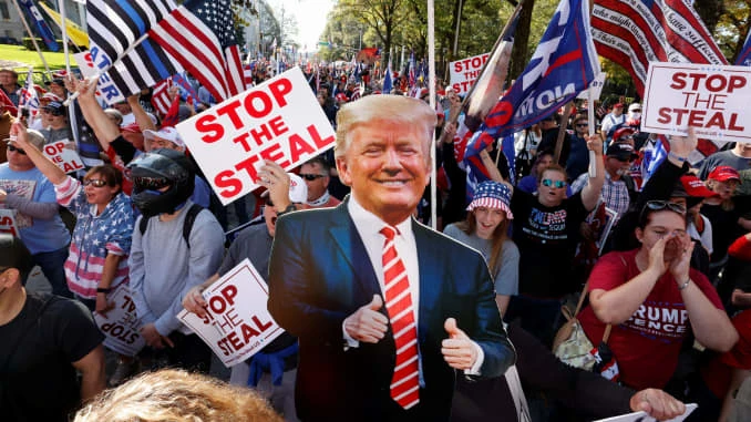 Những người ủng hộ ông Trump phản đối kết quả cuộc bầu cử tổng thống Mỹ ở TP Atlanta bang Georgia. Ảnh: REUTERS